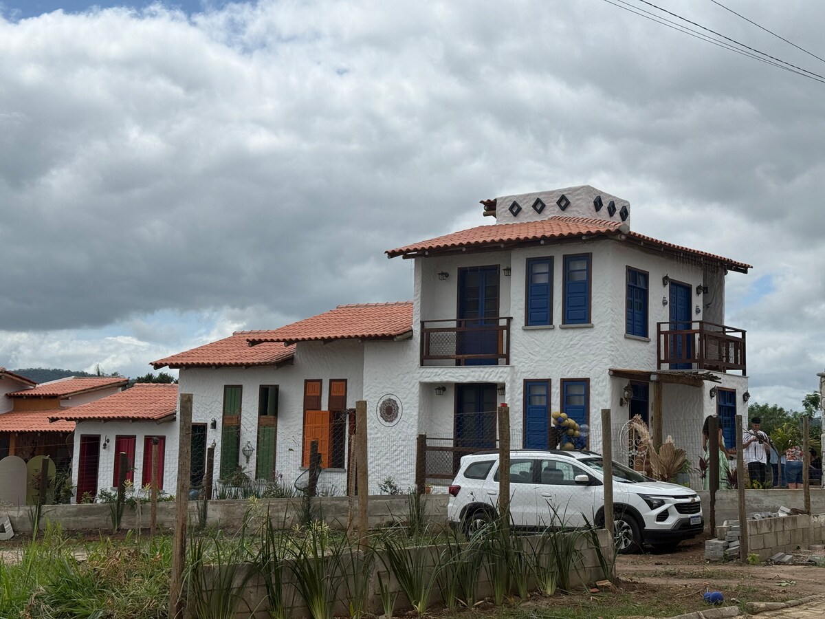 Nuestra Instagram: ruegueitaitu Relájate con toda la familia en este alojamiento que se encuentra en el pueblo de itaitu, jacobina, Bahía. Situada en el piemonte de chapada diamantina, rodeado de numerosas cascadas y bellezas naturales La casa con excelente ubicación consta de 3 dormitorios con cama doble y aire acondicionado, colchones individuales adicionales, dos baños con ducha eléctrica, sala de televisión y sala de estar, cocina completa, amplia zona gourmet con congeladores y barbacoa.