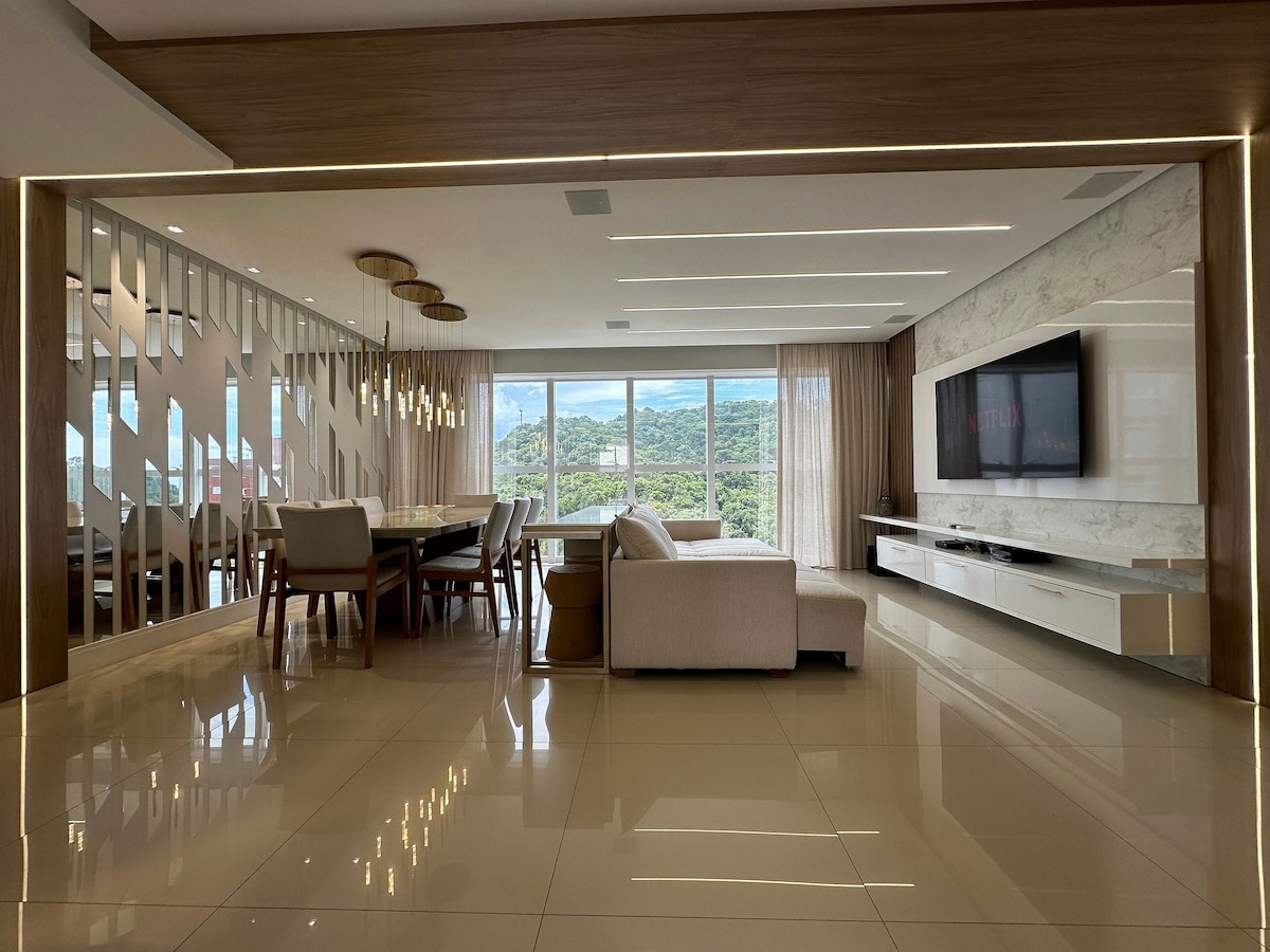 ¡Frente al mar! ¡Lujo en las alturas! ¡Maravillosa vista! Balcón+Barbacoas; 4 Suites; 4,5 Baños; Aire acondicionado en las habitaciones; 03 Plazas Privadas; WIFI; TV por cable y hasta 10 Huéspedes. ¡Maravilloso apartamento frente al mar, Barra Norte, vista total del paseo marítimo, lujo y exclusividad en una zona donde puedes olvidarte del coche en el garaje! En la Av. Atlántica, casi en la esquina con la calle 1901, dos mercados, panadería, farmacia, gasolinera 24 horas, restaurantes, bares y todo lo necesario alrededor del edificio.
