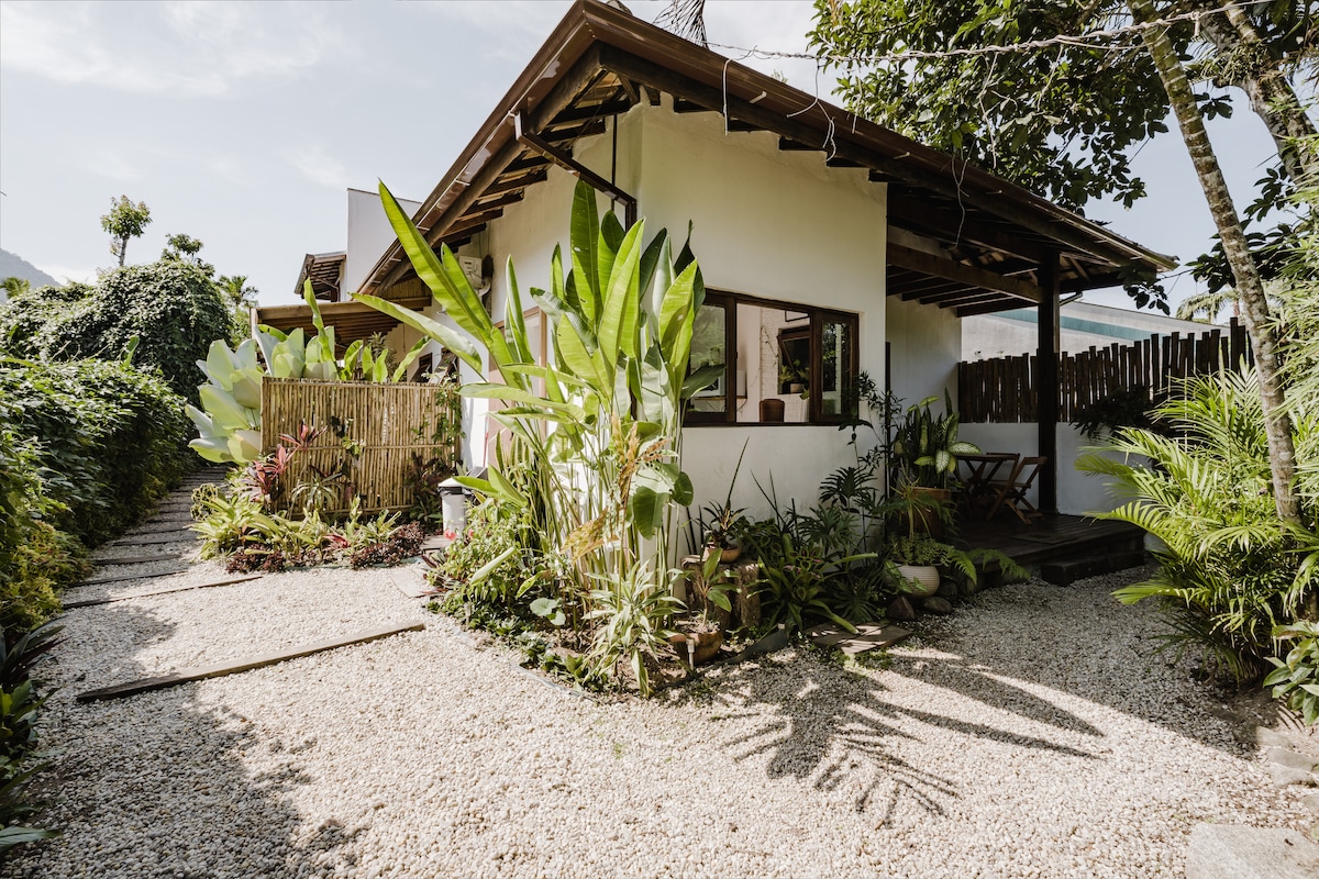 Charmosos estúdios self catering na linda praia do Prumirim. Entrada independente, pátio privado, cozinha totalmente equipada, cama queen size de alta qualidade, sala de estar confortável. Tudo projetado com qualidade, conforto e estilo. Grandes janelas panorâmicas que vão fazer você se sentir entre as copas das árvores! Este é um lugar mágico para quem procura uma fuga romântica à beira-mar conectando-se à natureza sem comprometer seu conforto. Tudo meticulosamente limpo, sanitizado e seguro!
