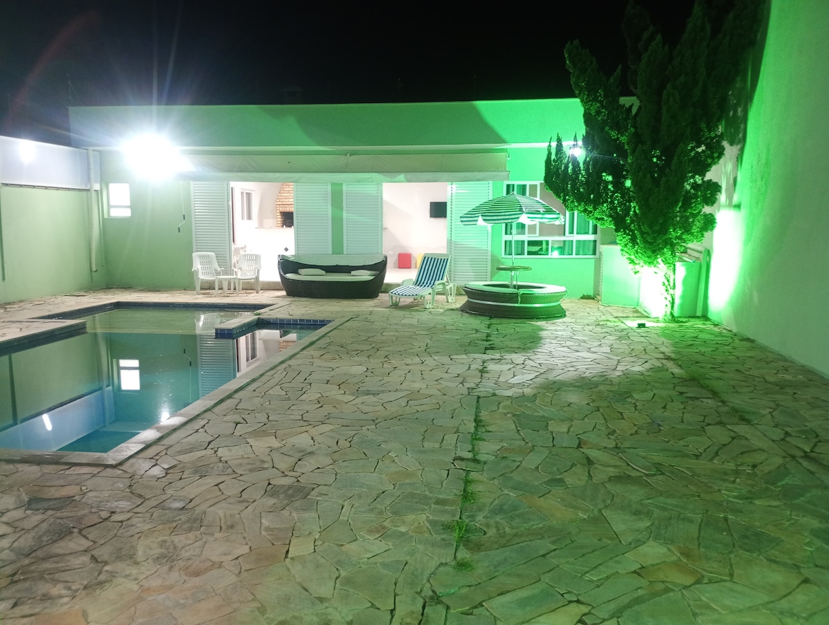 Vive momentos inolvidables en este lugar único, ideal para reunir a familiares y amigos. Hay 5 suites grandes y espaciosas con aire acondicionado Q/F y ventiladores de techo que pueden alojar hasta 26 personas muy bien. La casa tiene una piscina estupenda con cascada, hidromasaje, rodeada de un exuberante jardín con césped, palmeras, quiosco, puntos de hamaca que, por la noche, reciben una hermosa iluminación LED y tiene una sala de televisión, sala de juegos con mesas de billar y futbolín, cocina gourmet y un gran balcón.