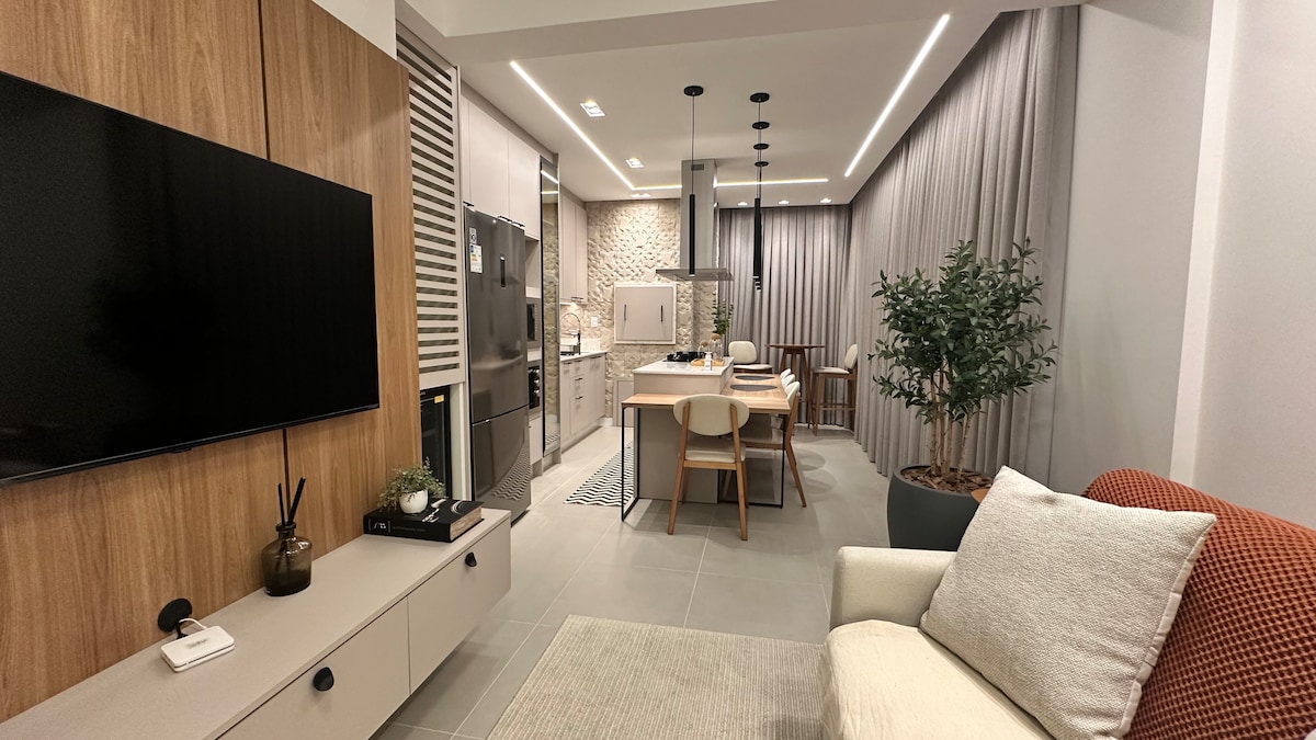 Cada detalhe do apto foi pensado para transmitir a leveza, elegância e aconchego do mar Mediterrâneo. Tons suaves, texturas naturais e iluminação planejada criam o ambiente ideal para dias inesquecíveis. 2 suítes, com ar condicionado e TV 4K. Sala de jantar e estar com TV 65". Cozinha equipada para jantares memoráveis. Sacada gourmet com churrasqueira e vista para o mar. No Rooftop, Piscinas aquecidas, perfeitas para banhos relaxantes até mesmo no inverno e academia totalmente equipada.