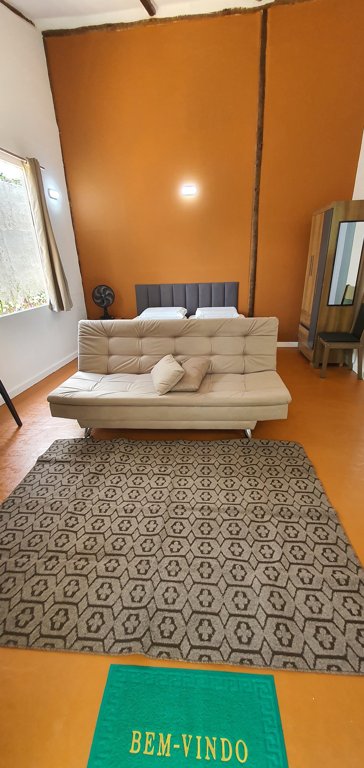 Está inserida em condomínio numa área de proteção ambiental que conta com quadra poliesportiva, de tenis, de areia, parquinho, lago para pesca esportiva, sala de jogos e brinquedoteca. A edícula tem suíte com cama de casal com bicama de solteiro. No salão tbm é possível colocar cama box de casal ou solteiro. Quiosque no jardim disponível, com churrasqueira e forno de pizza à lenha. Emprestamos raquetes de pingpong e tênis e jogos de mesa.