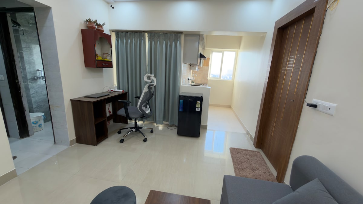 1BHK con estación de trabajo, wifi y vista al balcón