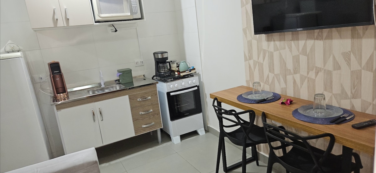 Nuestro apartamento estudio en condominio puede ser tu nuevo hogar, y un espacio sencillo pero acogedor, diseñado para ofrecer comodidad y practicidad en la vida cotidiana, totalmente amueblado, estufa eléctrica, minibar, microondas, cama doble, ropa de cama, armario, TV inteligente, ventilador de techo. Además, el condominio ofrece una piscina , con hidromasaje y cascada, gimnasio, jardín, zona para fumadores, el entorno es seguro y familiar, con cámaras de seguridad en toda la zona al aire libre, dando + seguridad.