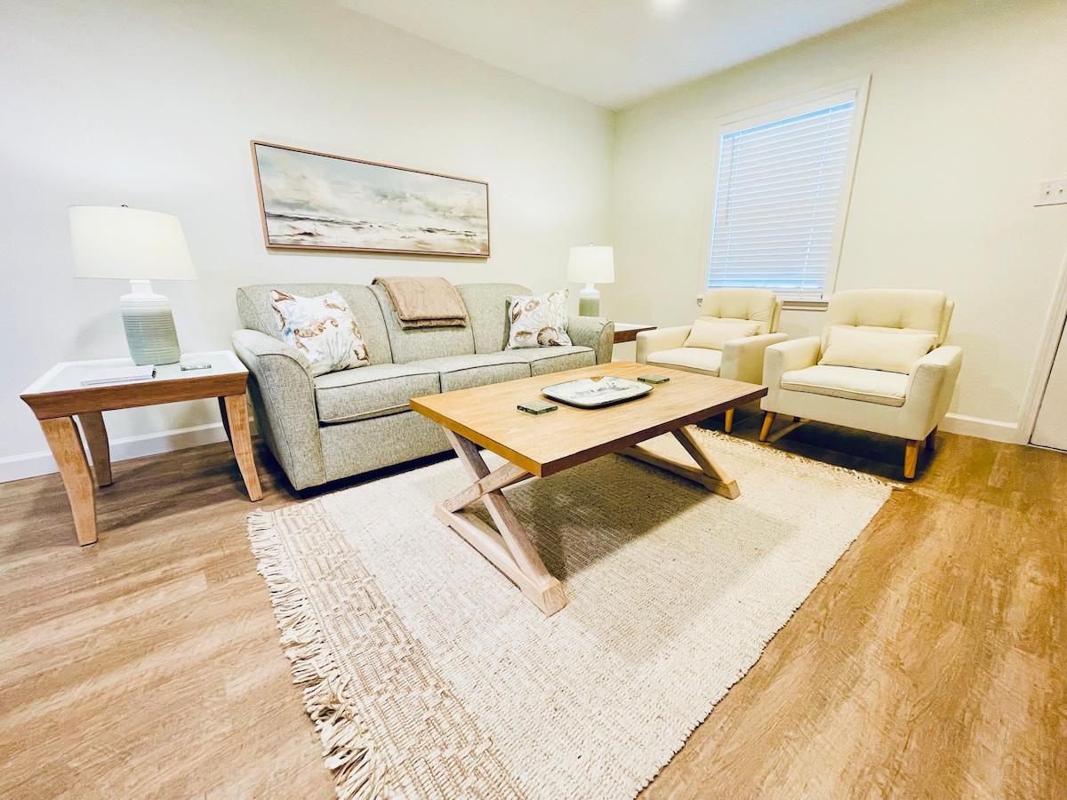 Welcome to Salt & Sunshine, a cozy and stylish pet-friendly retreat in downtown Ocean Springs — golf cart included. Just minutes from the beach, local shops, and restaurants, this thoughtfully designed two-bedroom condo offers modern comfort, relaxed coastal vibes, and everything you need for a perfect weekend getaway or extended stay.