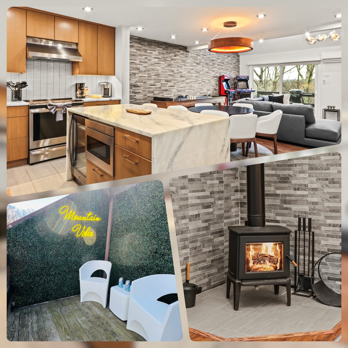 Entra en la comodidad de esta lujosa casa de 2 dormitorios y 2 baños con espacios recientemente renovados que la hacen sentir como un hogar lejos de casa. Situada en una zona residencial serena, la casa promete un refugio de montaña cerca de los mejores lugares para esquiar, restaurantes, tiendas, senderismo y servicios de las Pocono. Disfruta de las pistas de esquí y de las vistas a la montaña desde la terraza. El diseño contemporáneo y una gran cantidad de servicios satisfarán todas tus necesidades. ✔ 2 cómodos dormitorios Cocina ✔ Totalmente Equipada ✔ Jacuzzi Televisores ✔ inteligentes.