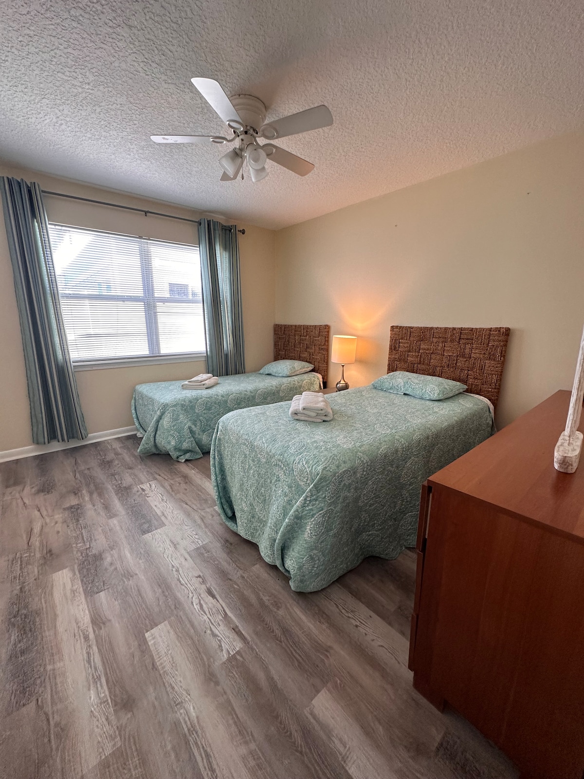 ☀️ ¡Alójate en el corazón de Jax Beach! A solo 4 manzanas del muelle. Camina a festivales, cafés, cervecerías y festivales frente al mar. Disfruta de una cocina completa, lavadora/secadora y wifi de alta velocidad. Mayo ~ 3 millas y TPC 7 millas. - Cama tamaño king 🛌 - Colchón Molucule. - TV inteligente de 65pulgadas - 2 camas individuales de la segunda habitación. - Lavadora y secadora completas. - Cocina completa - Trae tu propia bicicleta. - Pregúntanos sobre sillas, juguetes y prepárate para la playa. - El patio trasero completamente cercado se comparte con otra unidad.