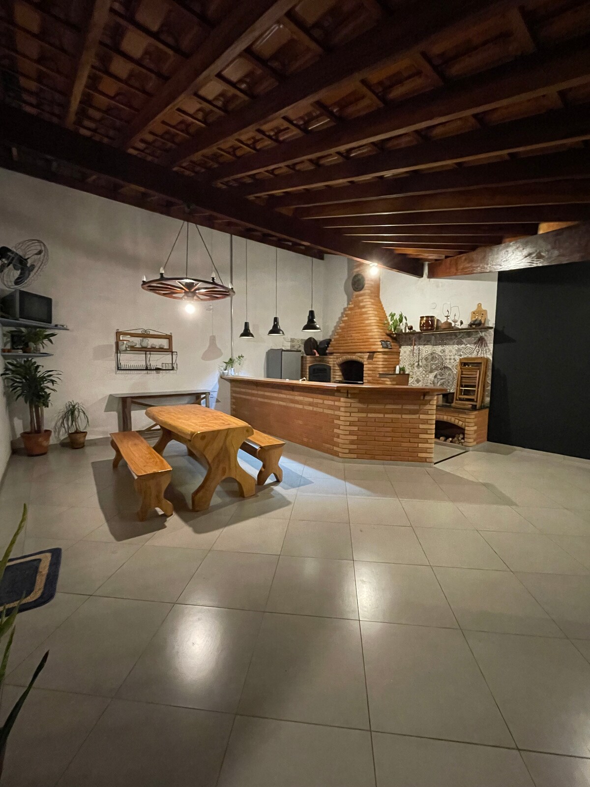 Hermosa propiedad en la frontera de Bragança Pta y Tuiuti. Acceso 100% asfalto. Mercado y restaurantes cercanos con entrega a domicilio. Lago para pescar. Huerta y huerto orgánicos, piscina panorámica climatizada sin cloro, animales de granja, campo de fútbol, barbacoa, chimenea, fogón. Excelente wifi para home office. ¡Se admiten mascotas! Proporcionamos ropa de cama y toallas. No se permite el sonido alto. La propiedad tiene una casa más que también se alquila por temporada.