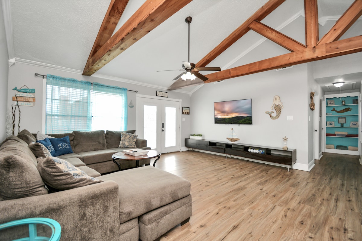 ¿Buscas una casa de playa moderna y exquisitamente decorada donde puedas pescar/hacer kayak junto al porche trasero y disfrutar de amaneceres/puestas de sol desde varias terrazas privadas? ¡La encontraste! Te damos la bienvenida a la villa Waterfront de Agua Vista. ¡Nuestra hermosa casa moderna cuenta con 3 dormitorios+ habitación extra en la planta baja/2,5 baños con amplia sala de estar/cocina, televisores inteligentes en todas las habitaciones, ping-pong, kayaks proporcionados para ti, pesca (con luces submarinas), sombra, juegos, bañera de hidromasaje para 8 personas, ventiladores en todos los porches y muchos juguetes de playa!