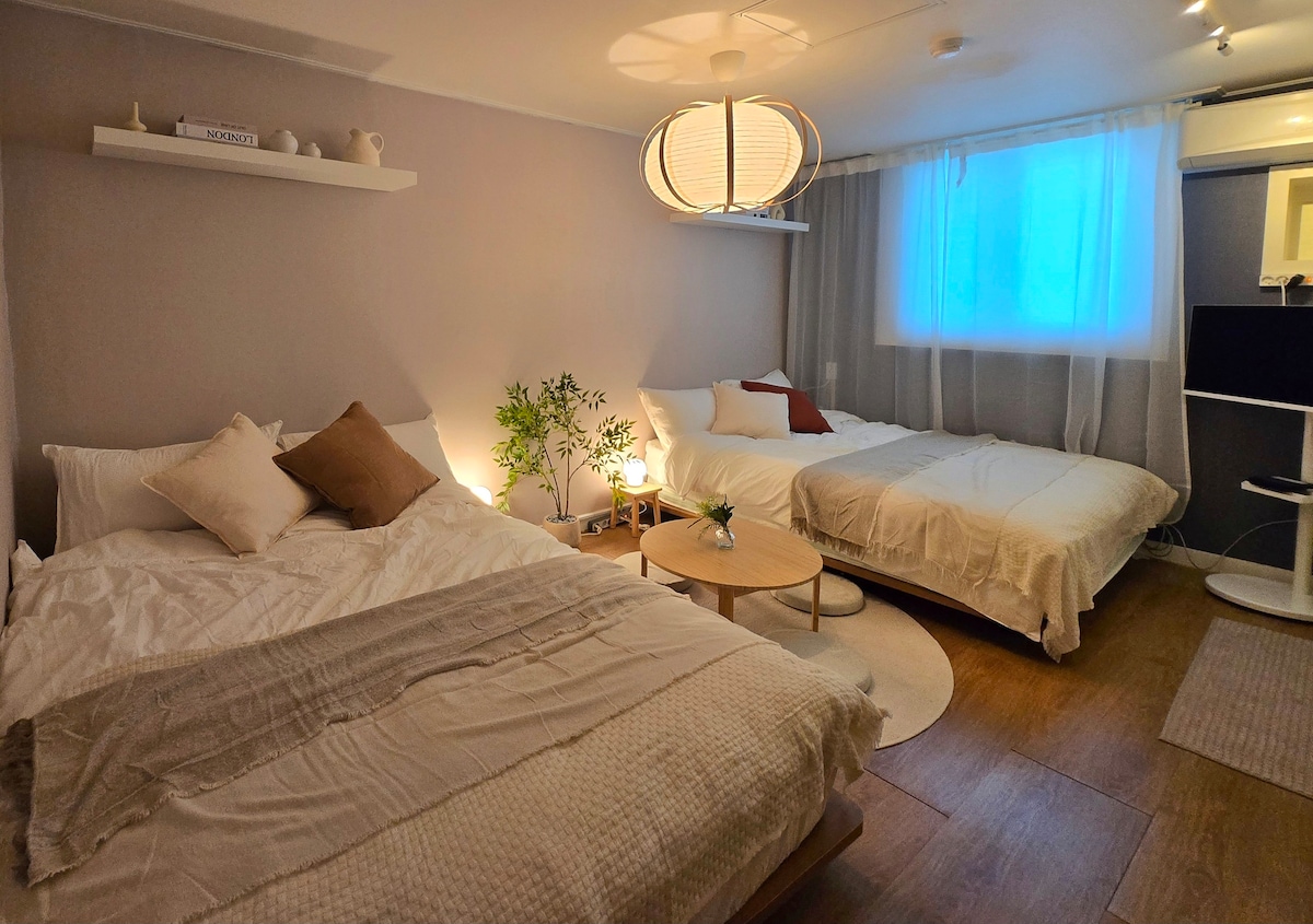 ¡Nuevo! 2 camas para 4 personas | Gocheok Dome, Yeouido, Hongdae | Autobús al aeropuerto y metro a 5 minutos | Consigna de equipaje gratuita