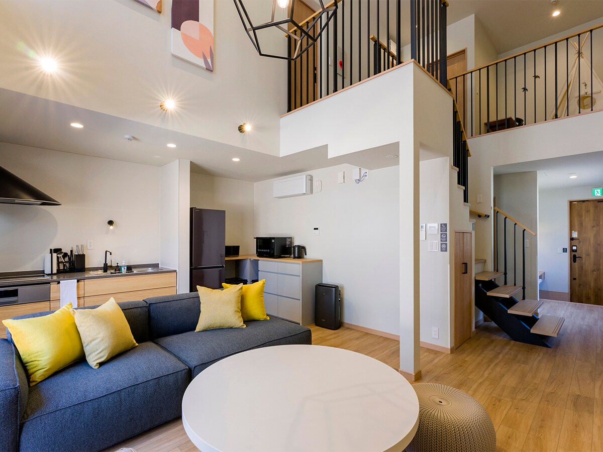 Este es un alojamiento privado tipo villa que se reabrió en agosto de 2022.Con 126 m ² de amplias habitaciones con un EV y un baño semi-abierto con un jardín, tiene capacidad para 10 adultos como estándar. En el pasado, Toyotomi Hideyoshi, que visitó el santuario Sumiyoshi Taisha, se detuvo en este lugar y sacó un manantial de una tienda de té para hacer té para el Senriku de su compañero, y debido a que estaba impresionado por el buen gusto, se conoció la "Casa de té del príncipe" de su alteza real y la "Tenka Chaya" de Tenka Chaya.Esta posada fue creada en base al concepto de "ceremonia del té" que es adecuado para el nombre de Tenjia Chaya. Puede disfrutar del interior del concepto de ceremonia del té y la experiencia de la ceremonia del té que simboliza la cultura japonesa, y puede relajarse de buen humor mientras bebe sake japonés en el baño de cerámica Shigaraki con un jardín tsubo.También cuenta con una gran pantalla de 110 pulgadas y entretenimiento como proyectores e interruptores Nintendo, por lo que es un alojamiento ideal para grupos grandes.Es precisamente la disposición de la instalación donde se fusionan lo antiguo de Japón y el presente lo que dirige dramáticamente la experiencia de quedarse. Además, puedes volver desde el aeropuerto internacional de Kansai al hotel con un acceso excepcional, y desde el hotel a Tsutenkaku, Namba, Umeda, etc. en tren.