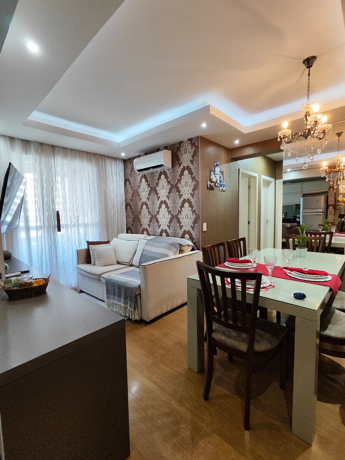 Apartamento de 77 m² privado para su familia y aire acondicionado en todas las habitaciones en una zona tranquila y segura. Hay 3 dormitorios y 2 baños: 1 es una suite con una cama queen de excelente calidad; 1 dormitorio con cama doble; 1 dormitorio home-office con cama queen que se convierte en 2 camas individuales. También hay aire acondicionado en la habitación (18.000 btus). Cocina planificada y completa, wifi de fibra, smart tv y netflix. El garaje está cubierto y dentro del condominio. Hay espacio para niños en el condominio y piscina libre para niños. Conserjería 24 horas.