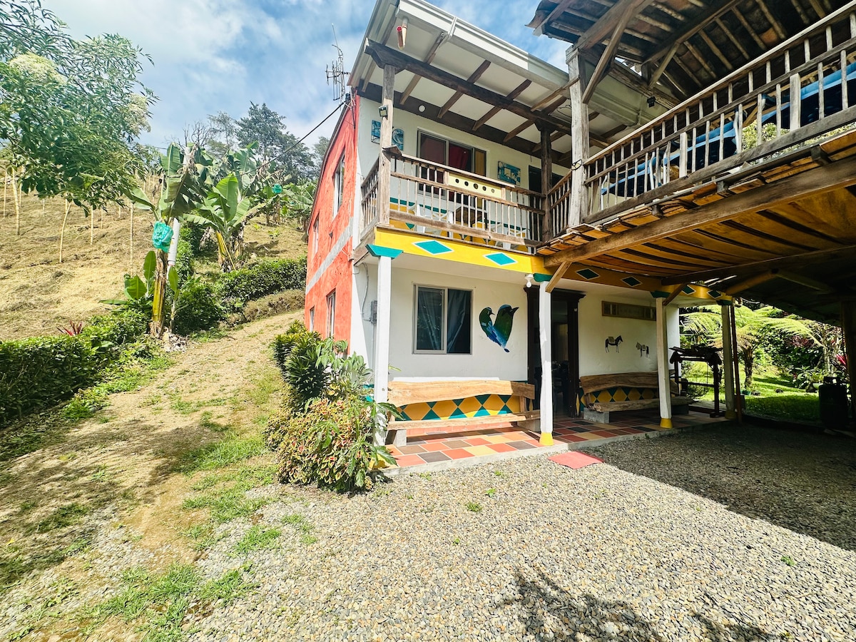 Más que un alojamiento, es una experiencia Única. toda una experiencia autóctona de nuestras raíces ancestrales, en una tierra privilegiada por si riqueza natural como la quebraba bonita, sus montañas, animales endémicos (avistamiento de Aves) y domésticos, nuestros cultivos y el mejor Café del suroeste antioqueño @Cafesuaveisabel. El único riesgo es q te enamores del lugar pregunta por nuestras diferentes experiencias.
