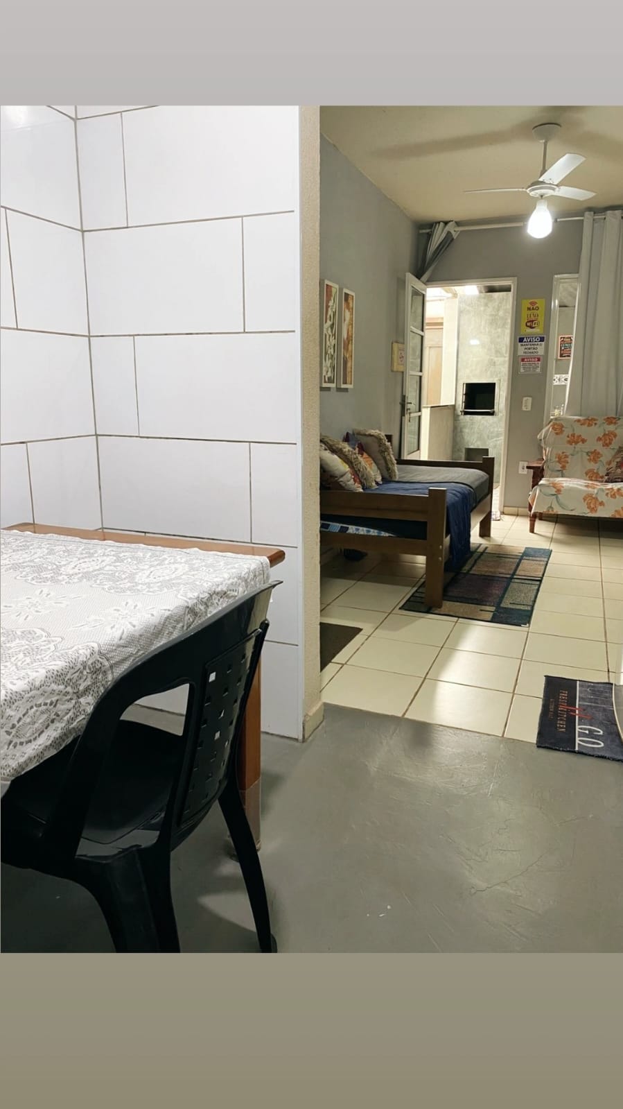 Acomoda 5 pessoas sendo 6 camas Sexto hóspede a combinar Quarto com ar condicionado e 2 beliches sendo 4 camas de solteiro. Sala c/ ventilador de teto com1sofá cama cozinha equipada ,outro quarto c/ 1 cama de casal e ventilador de teto banheiro c/ ventilador,garagem SEM COBERTURA vaga p/um carro. Roupas de cama completo. SEM TOALHAS DE BANHO Moro nos FUNDOS , sem contato com hóspedes. Garagem exclusiva dos hóspedes. O imóvel deve ser entregue sem lixo e comidas na geladeira.