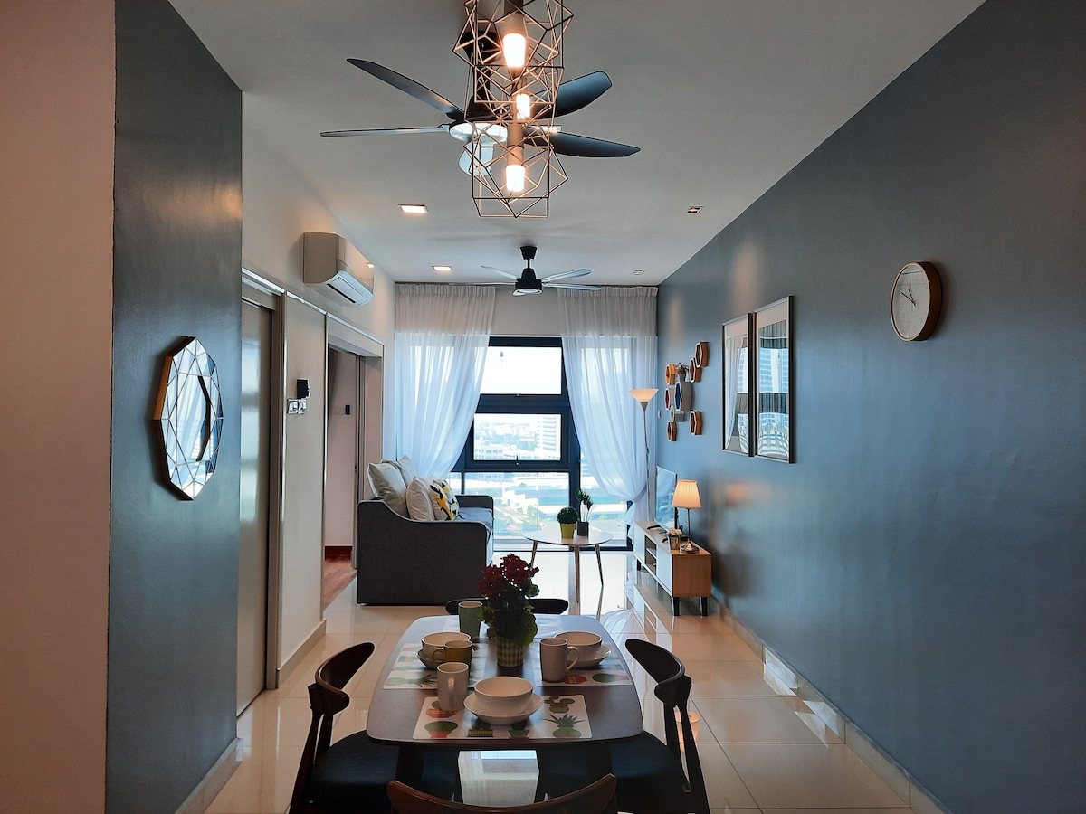 ☆Brand NEW Modern & Cozy Studio ♡♡ COMPLIMENTARY Instant Noodles Cups & Fresh Mint Candy♡♡ ☆Fully Furnished Studio ●42-inch smart TV with streaming services like Netflix ●Fully equipped kitchen with hood & hob ●2 doors fridge ●Queen size bed ●Lazy sofa ●Dining table & chairs ●Coway air purifier & water filter ☆ Practicalities ●Free 1 parking lot and high-speed Wi-Fi, adding to the convenience for guests ☆Facilities ●Swimming Pool ●Swing Chair infront unit door step