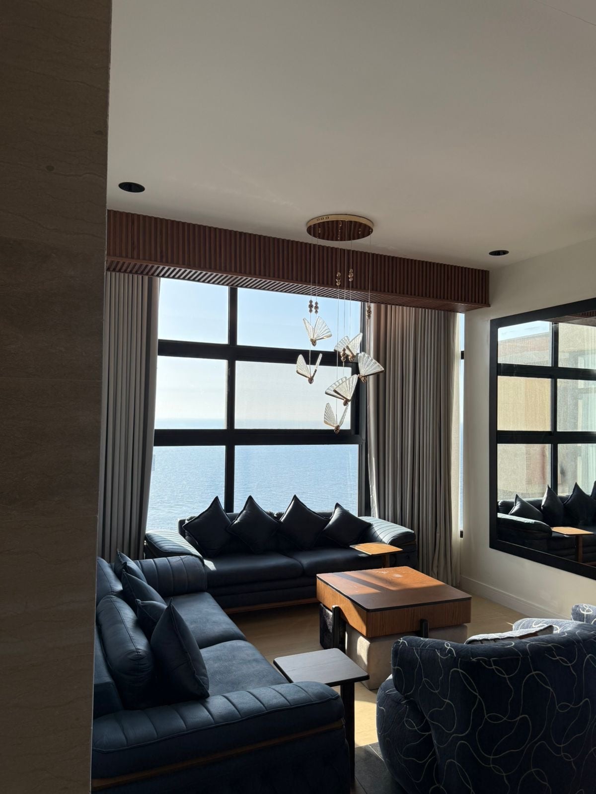 Bienvenidos a vuestra segunda casa con vistas al mar El apartamento consta de 1- Habitación principal con vistas al mar 2- Un dormitorio con dos camas y vistas al mar 3- Salón con televisor TCL de 65 pulgadas, con una elegante sala de estar con capacidad para 5 personas y un pequeño bar. 4. Cocina totalmente equipada —————————————————- Distancia a los lugares más importantes: Corniche Abhur Al Janoubiah a 4 minutos🚶🏼♂️ Estadio Al Jawhara: 7 minutos 🚗 Superdom: 12 minutos🚗 Aeropuerto Rey Abdulaziz: 16 minutos🚗 Radsi Mall 18 minutos 🚗 Jeddah histórica 32 minutos