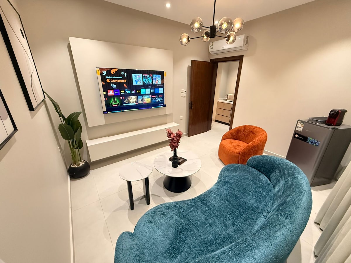 Un departamento moderno ubicado en el centro de Jeddah. - El loft está a 2 minutos de Prince Sultan, a 4 minutos del centro comercial Yu Wook y a 15 minutos del aeropuerto internacional de Jeddah. - Este moderno apartamento de diseño superior se adaptará a todas tus necesidades navideñas. - El departamento ofrece una habitación totalmente amueblada, sala de estar, cocina pequeña y baño. - Las necesidades navideñas más importantes están disponibles en el apartamento, como un televisor de 70 pulgadas, Internet 5G, nevera, cafetera y mucho más. - Llegada autónoma fácil de usar. (Respeta el nivel de ruido).