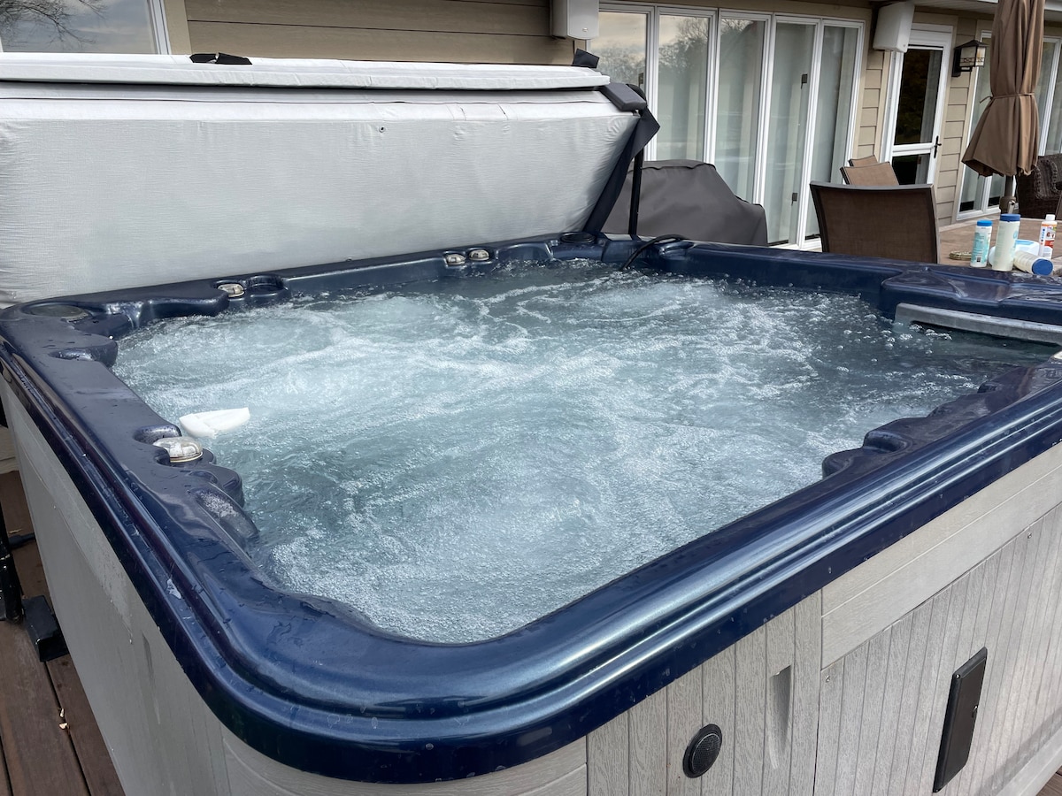 Bañera de hidromasaje al aire libre alrededor, frente al lago