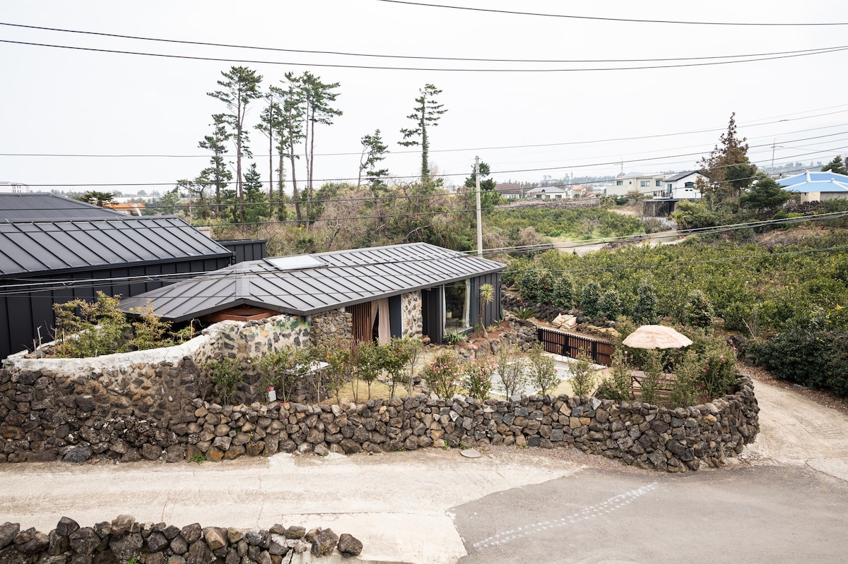 Algún 🌿 día: casa pequeña Hay un alojamiento emocional tranquilo para un solo equipo que se queda en una brisa tranquila en un pequeño pueblo a lo largo de la carretera costera Gwideok-ri en el oeste de Jeju. A través de las ventanas altas y abiertas El cielo, el mar, la puesta de sol roja y el molino de viento blanco se capturan de un vistazo. ¡Un lugar de descanso sin ser molestado por nadie! Puedes pasar un rato romántico en la chimenea y en el jacuzzi tibio al aire libre en un patio trasero privado lleno de naturaleza rodeado de paredes de piedra de Jeju, el sonido de las olas y el césped que se filtra a través de la pared de piedra, el cielo en una noche de verano bordada por la luz de las estrellas y la pared de piedra de Jeju. Este es un alojamiento privado y emocional para un solo equipo.🏡 Algún día_Esperamos que tengas un descanso cómodo y un recuerdo feliz en una casa pequeña.