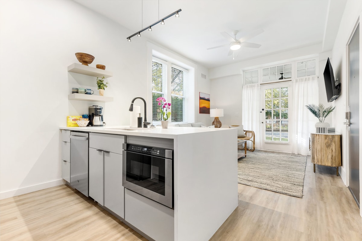 - Espacio compacto y modesto con terraza en la azotea. - La entrada tiende a ser ruidosa, especialmente por la noche. - No se comparte nada totalmente privado. - Amueblado con IKEA, decoración de Goodwill - ¡ESCALERAS EN EL TERCER PISO! - SOLO LOS PERROS cobran 10 $ por noche por perro. - NO GATOS, NO GATOS, NO GATOS. - SmartTV, HuluLive, Netflix, Prime, Disney, AppleTV - Se puede caminar a todo seguro. - Estacionamiento gratuito en la calle o pago de $ 10/día. - Anne's Deli al lado de lunes a sábado de 7:00 a. m. a 10:00 p. m., domingos de 8:00 a. m. a 5:00 p. m. - Entrada/salida anticipada/tardía a la 1:00 p. m. $ 20.