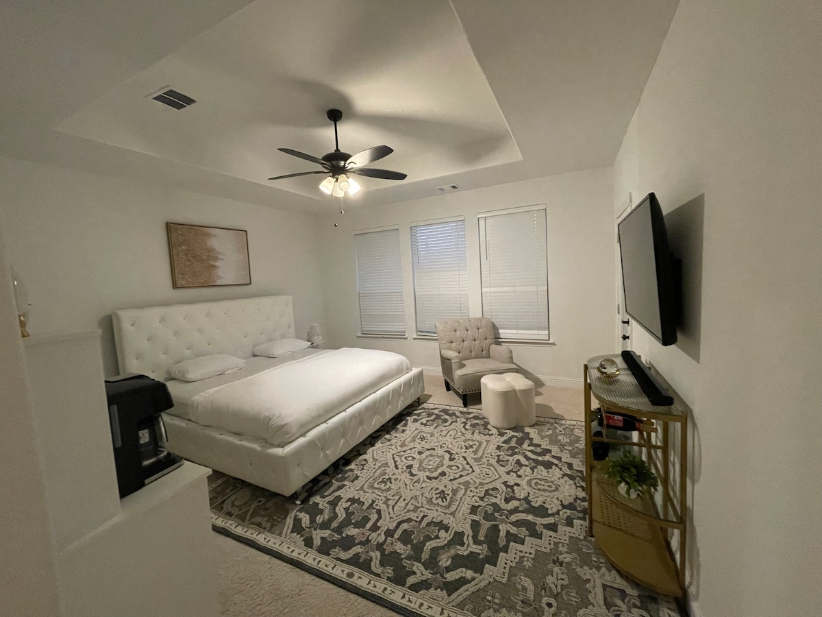 Ven a relajarte y disfrutar del hermoso paisaje de los vibrantes atardeceres y los verdes pastos de Texas. Con 4 camas, 2 baños completos, múltiples salas de estar, un gran patio trasero y una piscina disponible bajo petición. Hay muchas oportunidades de entretenimiento en esta increíble casa de huéspedes. La casa de huéspedes está conectada a la residencia principal por un gran corredor. El porche trasero es perfecto para tomar un café por la mañana o cenar junto al fuego. Independientemente de cómo decidas usarla, ¡esperamos que te vayas con grandes recuerdos!