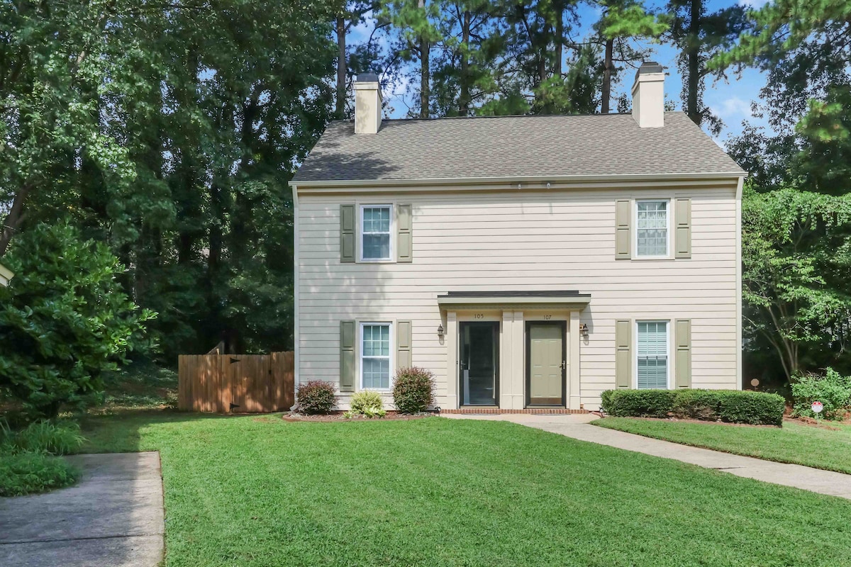 ¡Te damos la bienvenida a esta serena y encantadora casa adosada! Esta hermosa y vibrante propiedad está renovada y a 10 minutos del centro de Raleigh. El diseño y la distribución se amueblaron profesionalmente pensando en la estancia de nuestros huéspedes. Es muy espacioso y perfecto para pasar tiempo con amigos o familiares. Ambos dormitorios tienen camas tamaño queen, por lo que puedes extenderte cómodamente. Lo que más nos gusta de esta propiedad es el acceso a los patios: ¡tienen cierto tipo de magia! ¡Estamos deseando que te quedes!