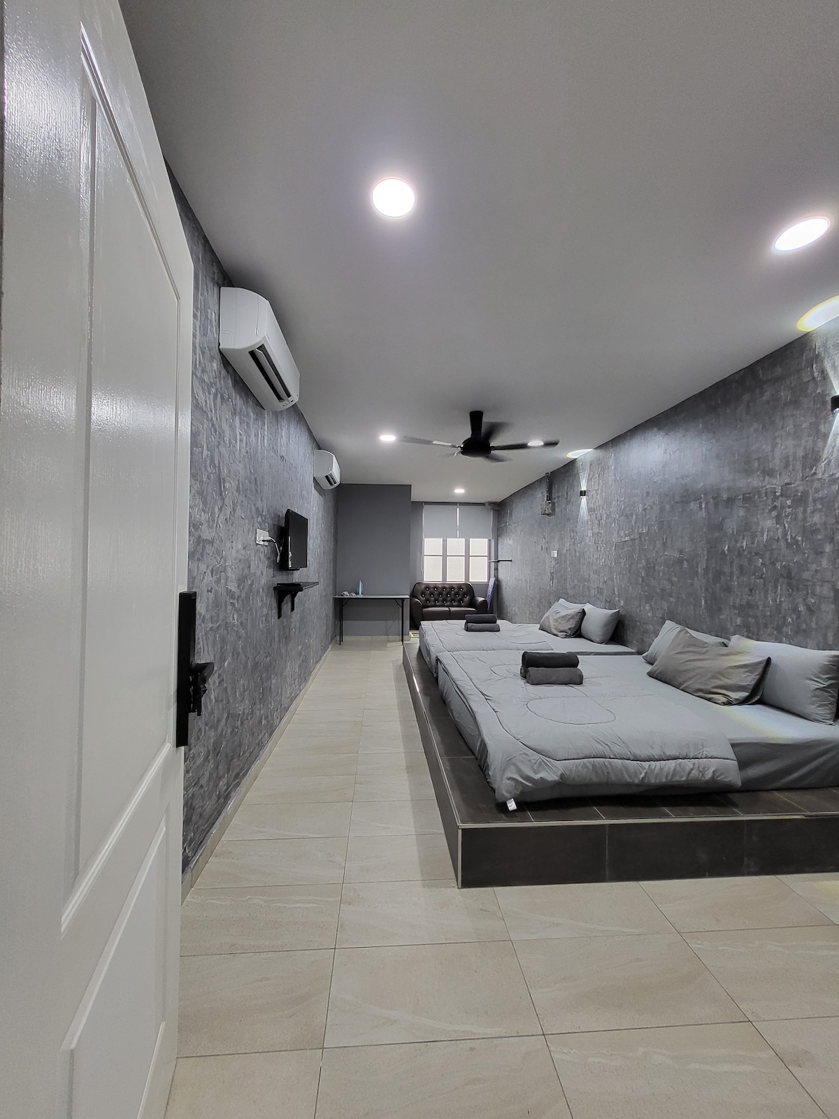 Esta es una habitación familiar con capacidad para 5-7 personas, la habitación tiene aire acondicionado y baño privado con calentador de agua. * El alojamiento es una casa adosada de dos pisos en la zona de seguridad, con 5 habitaciones y 5 baños. Hay aire acondicionado en la habitación y el baño también tiene un baño con agua caliente. También hay un parque delante de la casa de familia para que tú y los niños podáis divertiros y relajaros.