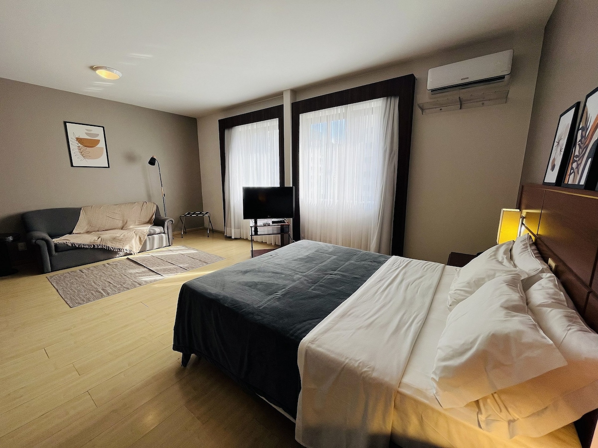 Ubicada en la mejor zona de la ciudad, esta elegante suite combina sofisticación, comodidad y funcionalidad. El espacio está decorado con mucho gusto y cuenta con una distribución abierta, una cama cómoda, un televisor inteligente y aire acondicionado. Ideal para parejas o viajeros de placer, ofrece fácil acceso a los principales lugares de interés turístico, restaurantes y tiendas. Perfecto para aquellos que buscan una estancia encantadora y cómoda en el corazón de la ciudad.