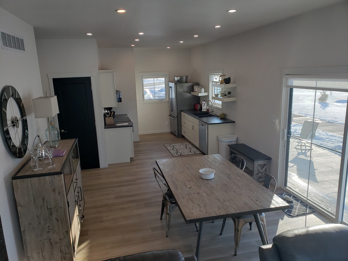 This stylish place to stay is perfect for group trips. Master bedroom with small private bath; including a bonus room. Guest bedroom with 4 beds for kids or large family. Second bathroom with shower/bathtub. Spacious vaulted kitchen living room with tons of seating for lake views, binge watching favorite series, or watching the cook make the magic happen. Longer stays and weddings looking for dates more than 1 year in advance; welcome to message for details and special rates.
