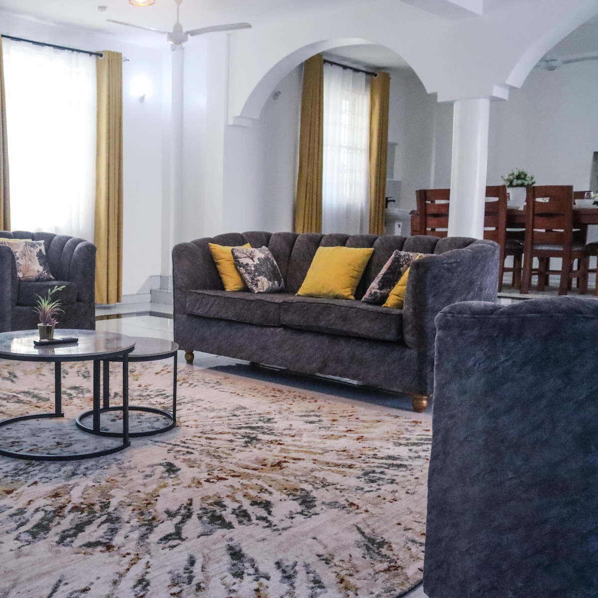 Kay's Residence es una villa privada cálida y lujosa situada en el corazón de Bamburi, Mombasa, que ofrece una mezcla perfecta de comodidad acogedora y comodidad moderna. Los invitados disfrutan de: Privacidad ✅exclusiva: villa entera para ti sin espacios compartidos. ✅Exuberante jardín privado ✅Ambiente cálido, acogedor y hogareño: interiores ✅cuidadosamente decorados que te hacen sentir como en casa. ✅Ubicación privilegiada: a minutos de la playa de Bamburi, lugares para ir de compras, restaurantes y las principales atracciones, pero escondido del ruido.