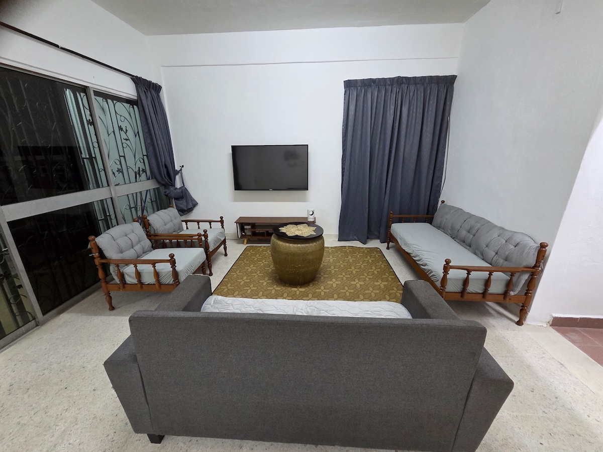 A solo 10 minutos a pie del popular Jonker Walk de Melaka, nuestro espacioso refugio ofrece 3 dormitorios y 2 baños, con capacidad para hasta 8 huéspedes cómodamente. Todas las habitaciones y salas de estar tienen aire acondicionado y son cómodas. Nuestra casa de familia es ideal para reuniones o viajes familiares, ya que ofrece un ambiente acogedor para una escapada inolvidable. Está a pocos pasos de Jonker Street, salvándote del tráfico y de la molestia de encontrar estacionamiento. ( Se requiere cargo adicional) Proporcionamos servicios de traslado al aeropuerto.