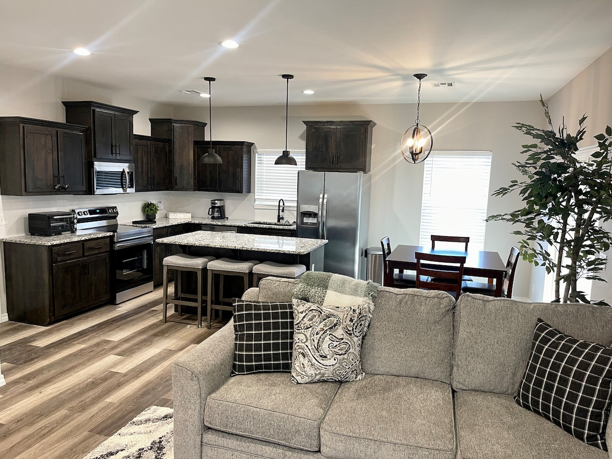Convenientemente ubicado cerca de MSSU y de las vibrantes afueras de Webb City, nuestro alojamiento recientemente renovado es perfecto para tu estancia. Disfruta de la comodidad de tres amplios dormitorios, equipados con 2 baños completos con opciones de ducha y bañera. El diseño acogedor lo hace ideal para familias o grupos que buscan relajarse después de un día de exploración. Relájate en nuestro patio trasero bellamente iluminado, que se completa con una chimenea perfecta para reuniones nocturnas bajo las estrellas.
