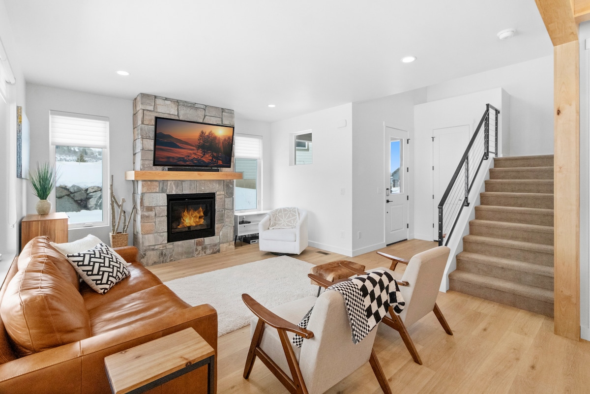 Bienvenido a The Bluebird Haus en Jordanelle, cerca de Park City, Utah, hospedado por No Worry Vacations. Esta nueva casa adosada de construcción ofrece lujo moderno y un ambiente de viajero del mundo. La sensación expansiva de esta casa con techos abovedados y un concepto abierto te ofrece la mejor casa de montaña moderna de Utah. Disfruta de vistas parciales de la sección Deer Crest de Deer Valley, el nuevo Deer Valley East Village Resort y el embalse Jordanelle desde el porche delantero. La ubicación es clave: fácil