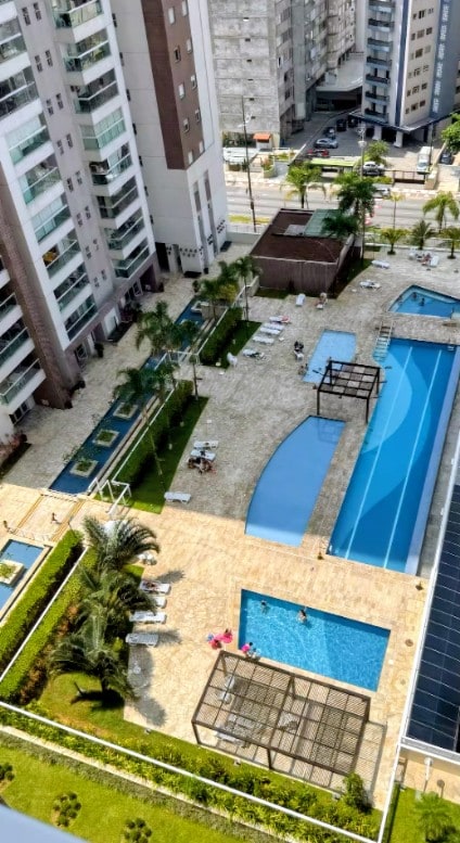 Apartamento Studio con vista a la piscina en el ilimitado frente al mar en Santos. Para que sea más fácil para los huéspedes hacer el check-in y el check-out, tenemos una puerta con un sistema de apertura de tarjetas, para que el huésped no dependa de nadie para acceder al apartamento. El apartamento tiene una cama tamaño queen, armario, cortinas opacas, sofá de 2 plazas (con cama doble), TV inteligente de 49", wifi (500 mb), iluminación LED moderna, aire acondicionado dividido y una red de seguridad en el balcón. 1 plaza de aparcamiento
