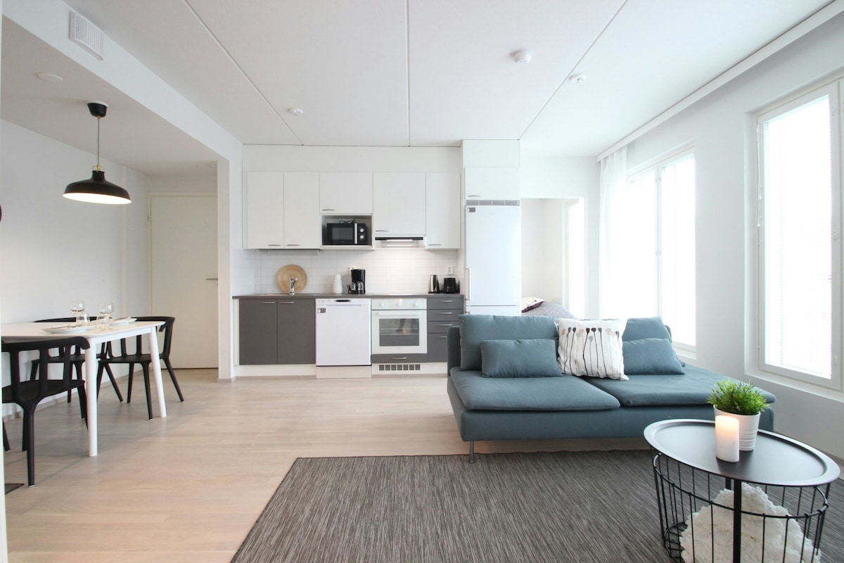 Welcome to a cozy 3-room apartment in Downtown Jyväskylä, perfect for up to 3 guests. Enjoy a fully equipped kitchen, private sauna, and balcony. Explore local parks, museums, cafes, and shops nearby.