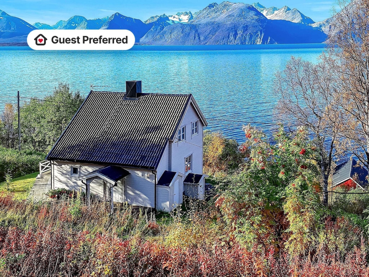 Casa moderna y acogedora, con vistas a los hermosos Alpes Lyngen. Lo mejor de este tranquilo refugio es la ubicación, justo en medio de la naturaleza, aislado y a solo minutos de hermosas caminatas, esquí de clase mundial. El prado donde se encuentra la casa se extiende hasta la playa de guijarros. En invierno, observa las luces del norte sobre el alojamiento. En verano, siéntate en la terraza toda la noche disfrutando del sol de medianoche. La casa fue construida en 2016, con camas bien equipadas y muy cómodas.