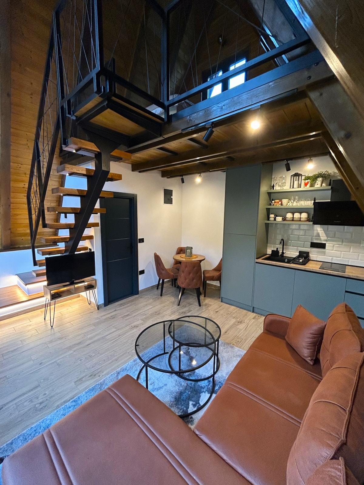 Prelijepa planinska A frame brvnara za dvoje sa terasom koja ima predivan pogled na masivnu planinu. Na 40m nalazi se planinski izvor sa veoma zdravom i kvalitetnom vodom za pice. Kreveti se mogu spojiti tako da mozete dobiti i bračni ležaj od istih. Toalet i tuš se nalazi na 35 metara od brvnare . U pitanju je poseban objekat sa toaletima sa keramičkim pločicama.
