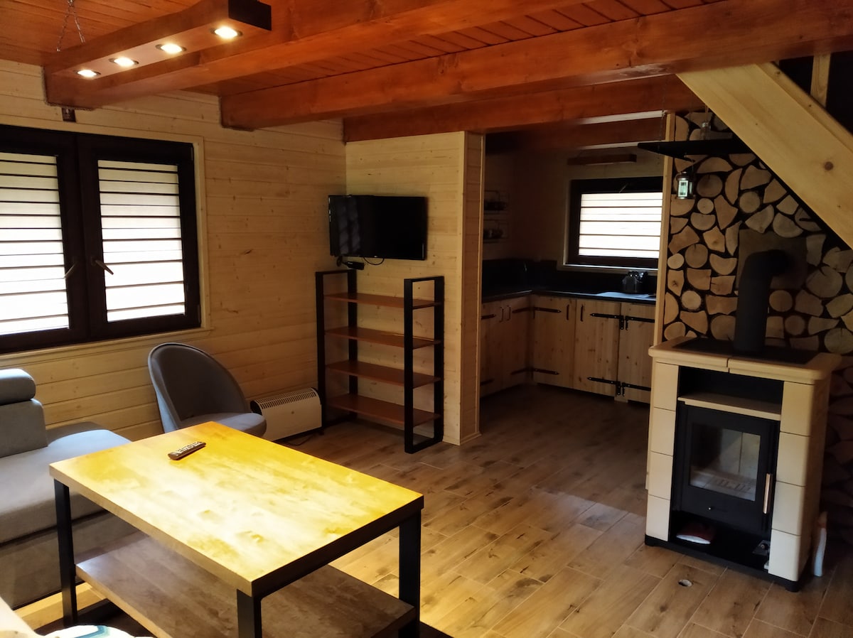 Apartamento Wood es un departamento donde la madera se encuentra con el olor al bosque. Por la mañana, siéntate en la terraza con vistas a las colinas de Bieszczady, relájate con el té junto al calor de la chimenea por la noche. El departamento está ubicado en el tranquilo pueblo de Strzebowisko, una base ideal para familias y para Cisna.