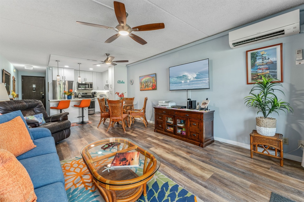 Disfruta de un apartamento limpio y despejado con cocina completa, dormitorio con cama tamaño king, baño con ducha a ras de suelo, lavadora/secadora, aire acondicionado dividido (sala de estar y dormitorio), persianas opacas, lanai (balcón) y juguetes de playa. Sofá sofá convertible de tamaño completo en la sala de estar. A menos de 2 minutos a pie de la playa, y muchos restaurantes excelentes también están a pocos pasos. Airbnb recauda el GET (4,712 %), el TAT (10,5 % en 2025 y 11 % en 2026) y el TAT de Maui (3 %) como parte de la reserva. No se deben pagar tarifas adicionales.