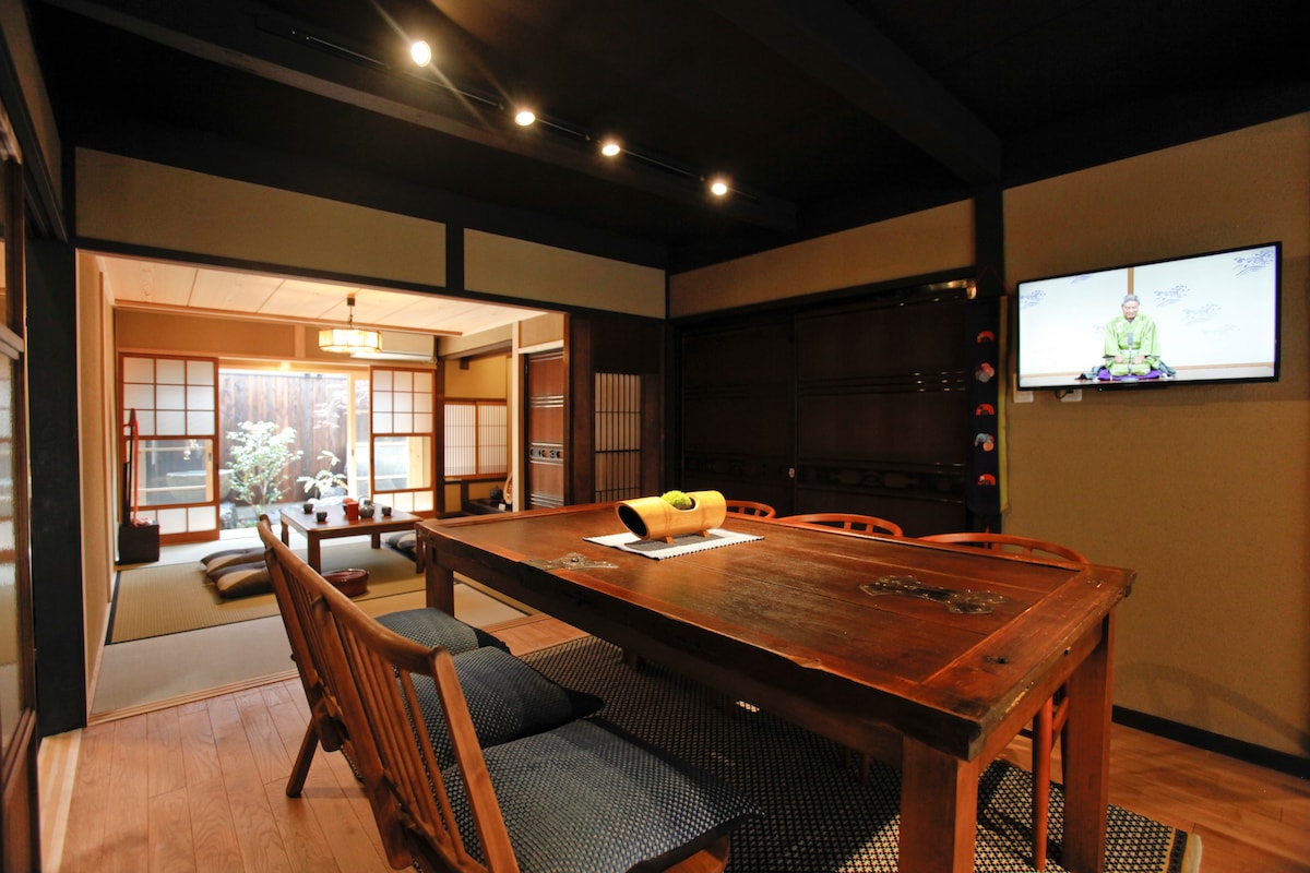 The beautifully refurnished 100-year machiya enjoys all the charm of traditional and modern Japan spirit: tatami, sliding wooden doors with wa-shi partition, private garden, along with selected luxurious modern comfort. Located inside the tranquil area of Chomyo temple while only 5 mins' walk from subway/Keihan Sanjo sta., we promise you a fully immersive Kyoto experience. Also convenient to walk to Gion and Heian Shrine. Supermarkets and amazing restaurants in neighborhood at your service.