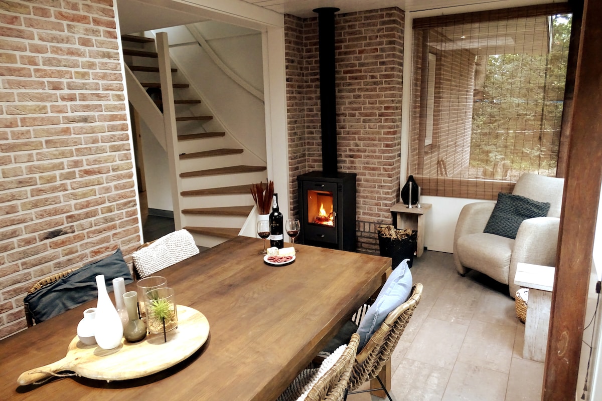 Bienvenido a la casa del bosque 'Snug as a Bug'. En este amplio bungaló independiente en medio del bosque, puedes disfrutar de la paz y la naturaleza. La calidez proviene tanto de las acogedoras habitaciones como de la estufa de paletas/chimenea exterior. Para disfrutar al máximo, hay bicicletas, buena wifi, trona y juegos/libros disponibles. Esto hace que la casa del bosque sea muy adecuada para familias que desean disfrutar de una estancia cómoda. Debido a la ubicación, no alquilamos a jóvenes o grupos de amigos.