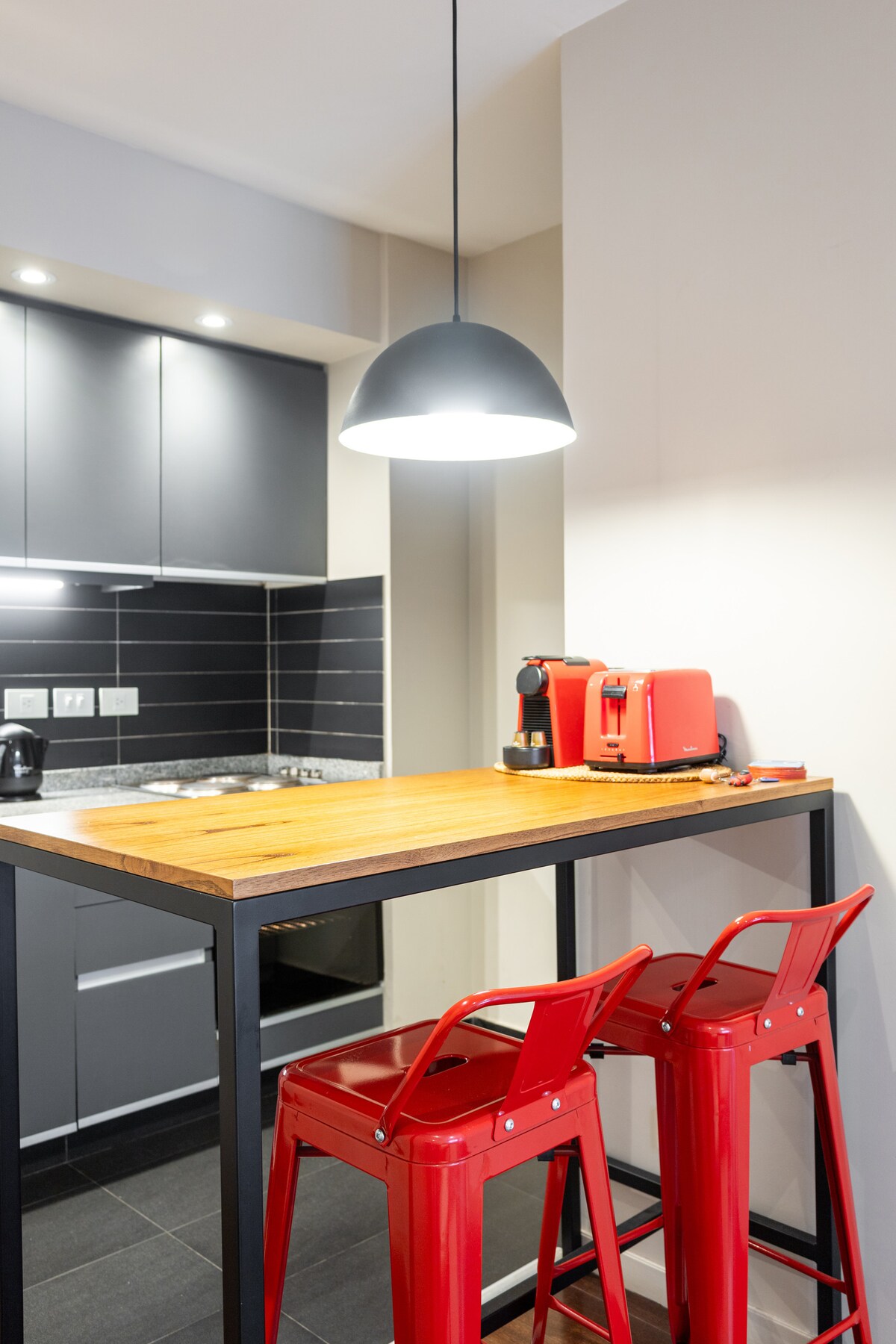 Nuestros departamentos de 1 dormitorio cuentan con un amplio living, sofá cama, balcón y Smart TV (cuentas de streaming no incluidas). La cocina está completamente equipada y el dormitorio tiene una cama Queen. Con decoración moderna y ambiente cálido y luminoso, este departamento es ideal para viajeros que buscan un espacio tranquilo en la ciudad. Contamos con múltiples unidades (mismo tamaño y equipamiento - la decoración puede variar) La unidad asignada está sujeta a disponibilidad.