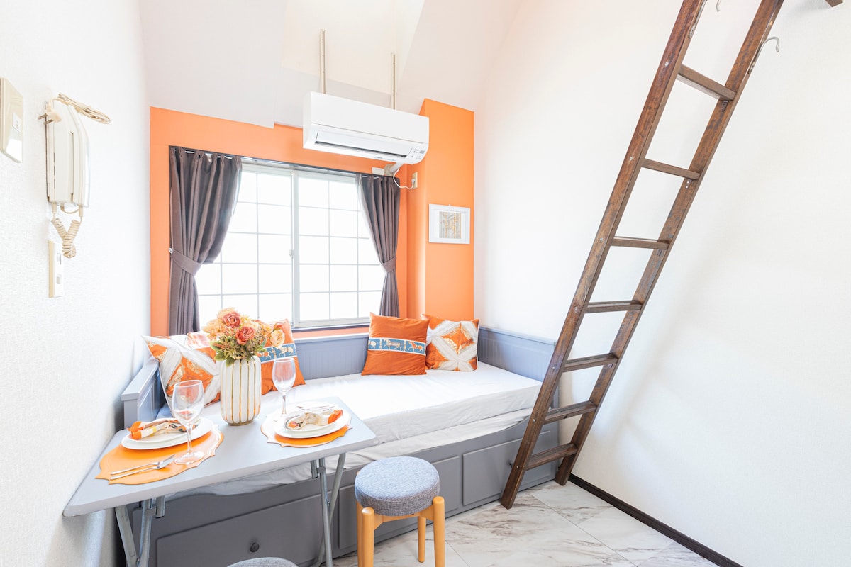 Habitación loft elegante con luz solar, ¡acogedora y curativa! No solo para hacer turismo, ¡disfruta de la vida real de Tokio! A 1 minuto en tren de Shinjuku 🚄 + 10 minutos a pie de Hatagaya. ¡Barrio tranquilo con fácil acceso a Shinjuku y Shibuya! Estudio 🏠 privado (10,3 ㎡ + loft) – cómodo para 1–2 personas (máx. 3). Unidad 3F: sin ascensor, solo escaleras. Elementos esenciales, incluido el equipo de cocina (sin condimentos). Sin TV, ¡wifi gratis! El 🛁 baño es compacto, hay un baño público a 2 minutos si necesitas espacio. 🛒 Supermercado, restaurantes y tiendas de conveniencia cerca. Envíanos un mensaje en cualquier momento con preguntas 😊