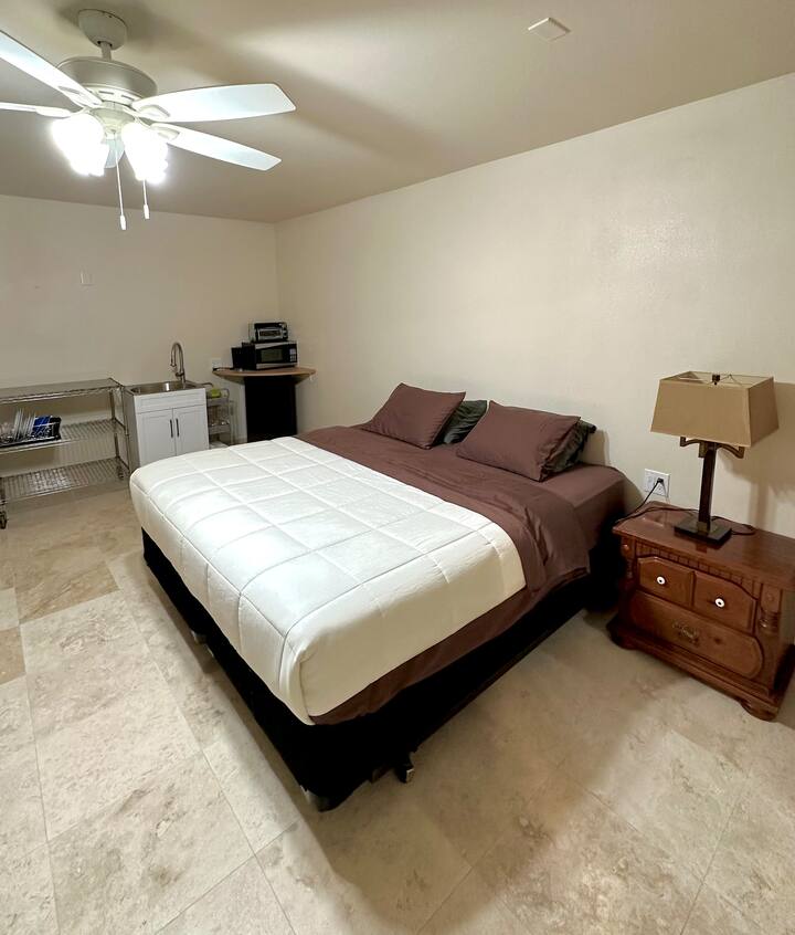 Esta joya escondida se encuentra en la bahía de Kealakekua. Entorno privado en nuestro patio trasero inferior. Camine hasta la cercana playa de Manini. Estamos ubicados a 4 millas en la parte inferior de Napoopoo Rd Cocina exterior totalmente equipada. Estufa de gas, debajo del mostrador refrigerador/congelador. Sala de estar/comedor y dormitorio/área de tocador cerrado con área abierta en la línea del techo por donde pasa una gran rama de árbol ficus. Ducha al aire libre/área de aseo. Muy privado. El precio diario incluye impuestos estatales Hawaili, 10.25% TAT y 4.25% GE .