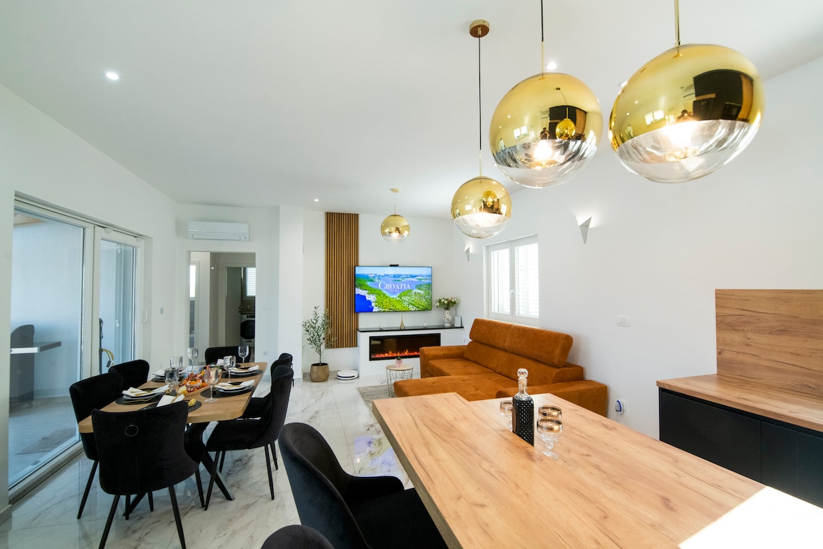 Welcome to Relax House Joja, a modern holiday home located in a quiet rural area near Sinj. It’s the perfect getaway for couples, families, and anyone looking to unwind and enjoy a few days of complete relaxation. About the Space The house features a bright and spacious interior designed for comfort and a warm, homely feel. Enjoy the modern décor with natural elements and relax by the fireplace, which adds a special cozy atmosphere.