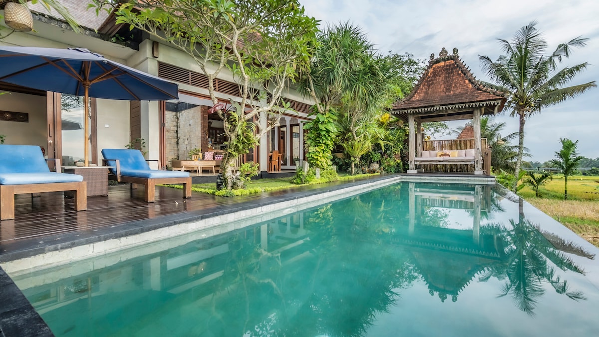 ¿Necesitas aislamiento, tranquilidad y vistas impresionantes? Esta encantadora villa privada de lujo con 1 dormitorio y piscina se encuentra entre hermosos arrozales en terraza. Ya sea en un retiro de escritura, viaje de investigación, nómada digital o una escapada romántica, ¡este es el lugar perfecto para relajarse, pensar y crear! Un sereno escondite rural a solo 8 minutos del centro de Ubud. Bonus: ¡ofrecemos a nuestros huéspedes lavado, secado y planchado de ropa gratis dos veces por semana!