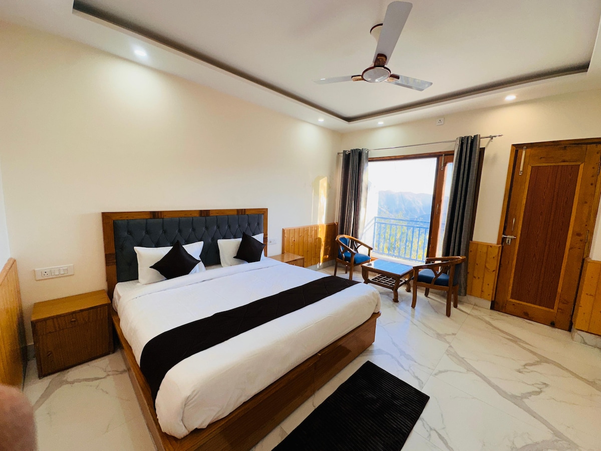 A spacious 1 BHK family suite in Kasauli, offering a cozy bedroom, comfortable living area, modern bathroom, and a private balcony with serene pine-hill views. Ideal for families, couples, and peaceful mountain getaways.