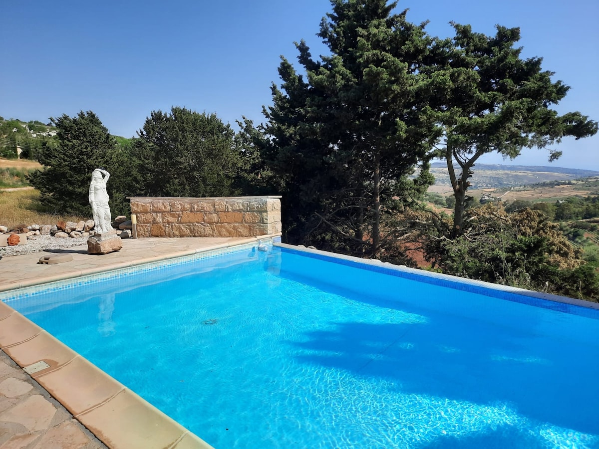 Forget your worries in this spacious and serene space. Away from all the city noise, it's the perfect place to relax! Ideal for nature lovers, wine lovers, yoga lovers, families, solo travelers or just about anybody really! Plus, the house is next to the Vouni Panayia Winery, so you won't run out of wine! The place also has a small chicken farm at the backyard and a tree garden