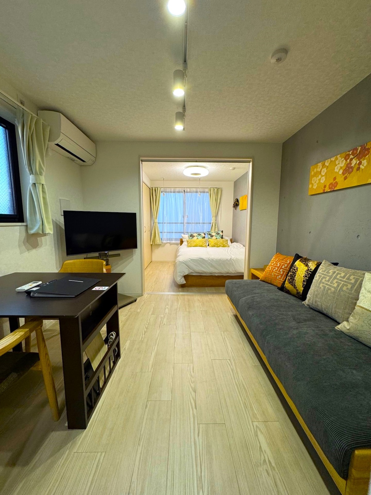 Apartamento de nueva construcción a 7 minutos a pie de la estación de tren, con proyector de 100 pulgadas y 31 m², bienvenidos a largos periodos de estancia