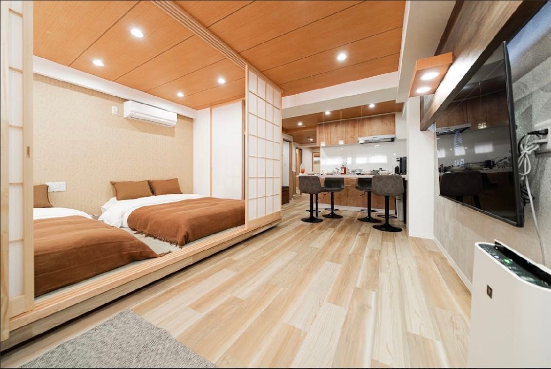 Booyah Sauna TOKYO ~Vacation Rental~ 2店舗目が東京・墨田区京島に新たにオープン。成田空港からわずか1時間という好立地にあり、観光にも非常に便利な場所です。施設内にはプライベートサウナを完備しており、リラクゼーションと健康促進に最適な環境を提供。最大4名まで宿泊可能で、家族や友人と特別な時間を過ごすことができます。また、Booyah Sauna TOKYOは浅草や東京スカイツリー、アメ横などの主要観光地にも近接しており観光とリラクゼーションの両方を楽しめる理想的な拠点です。サウナで体をリフレッシュした後は、東京の魅力あふれる下町エリアを巡ることができます。墨田区の静かな町並みでとこだわりのサウナで心と身体を整える特別な滞在をぜひお楽しみください。 ※「人数に応じて宿泊金額が異なります。1名以上のご宿泊で追加料金が発生いたします。正しい予約人数でのご予約をお願いいたします」